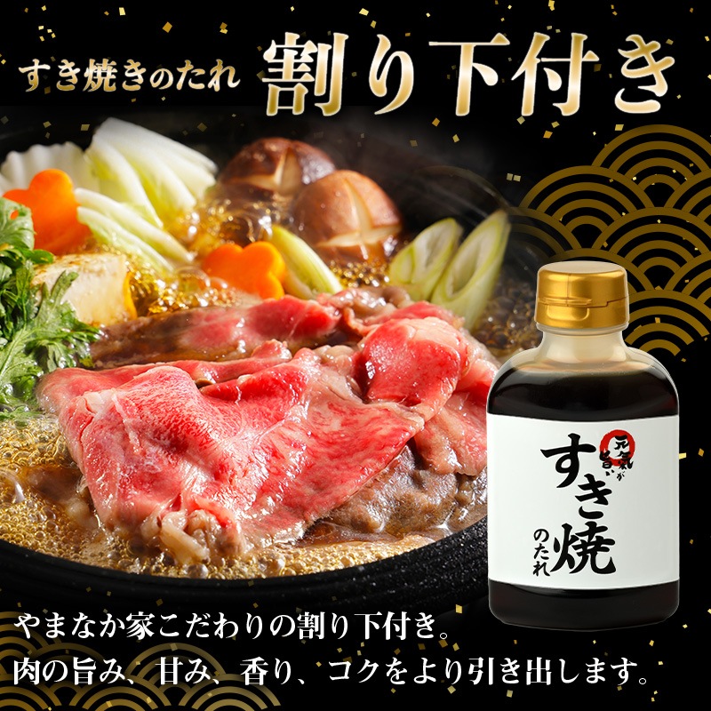 【割り下】:すき焼きのたれ(醤油、砂糖、本みりん、合成清酒、果実酒、麦芽エキスパウダー)、牛脂/調味料(アミノ酸等)、着色料(カラメル)、酸化防止剤(亜硫酸塩)、酸味料、酒精