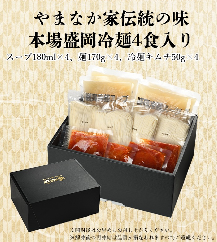 4人前(スープ180ml×4、麺170g×4、冷麺キムチ50g×4) |