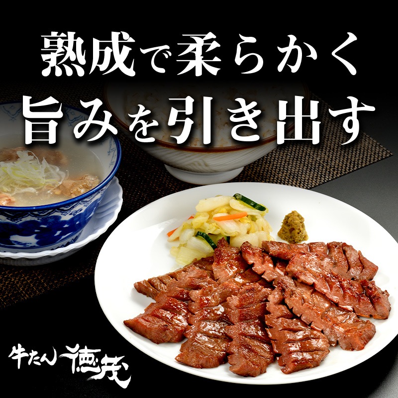 熟成牛たんは、しっかりとした歯ごたえと牛たんならではの旨みを堪能できる部位を使用しています。特製塩だれでじっくりと味付けし、熟成による深いコクと香りが魅力。噛みしめるたびに肉の旨みが口いっぱいに広がります。