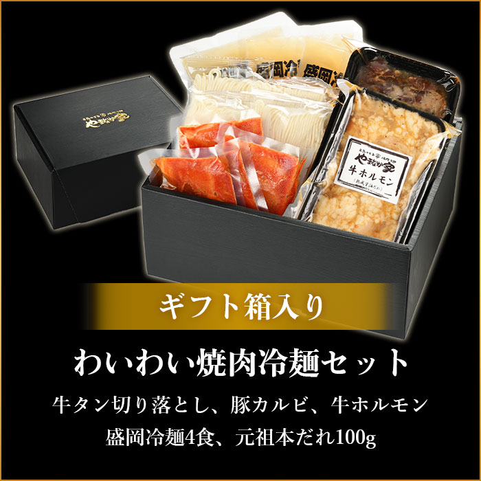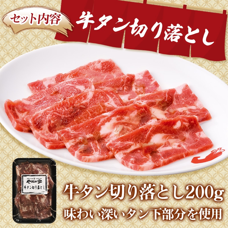 牛タン切り落とし200g、豚カルビ200g、牛ホルモン200g、冷麺4食、元祖本だれ100g |
