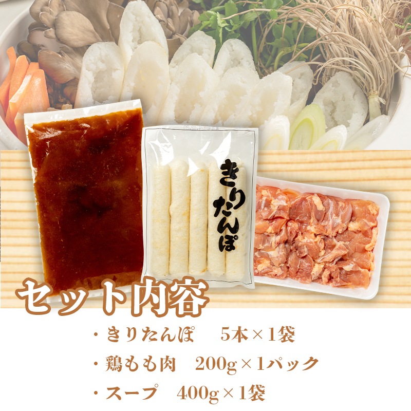冷凍きりたんぽ(60g×5本入)、鶏もも肉200g、スープ400g |