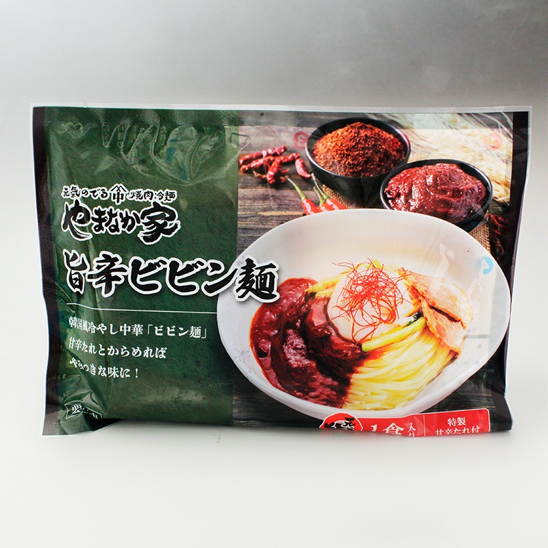 焼肉屋が作る「旨辛ビビン冷麺」、つるりと喉ごしのよい生麺にやまなか家特製のたれをセットしました!唐辛子醤油砂糖にんにくなどを混ぜた特製たれです!
