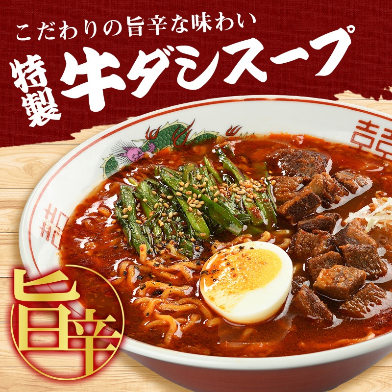 【めん】小麦粉(国内製造)、卵白粉末、食塩、小麦たん白/かんすい、クチナシ色素、(一部に小麦・卵を含む) 【スープ】動物油脂、砂糖混合異性化液糖、ビーフエキス、豆板醤、食塩、砂糖、チキンエキス、ごま油、醤油、にんにく、香辛料、ラー油、野菜エキス、すりごま、オニオンパウダー、魚介エキス、ジンジャーパウダー/調味料(アミノ酸等)、カラメル色素、増粘多糖類、乳酸、酸化防止剤(ビタミンE)、(一部に小麦・大豆・豚肉・牛肉・ごまを含む) |
