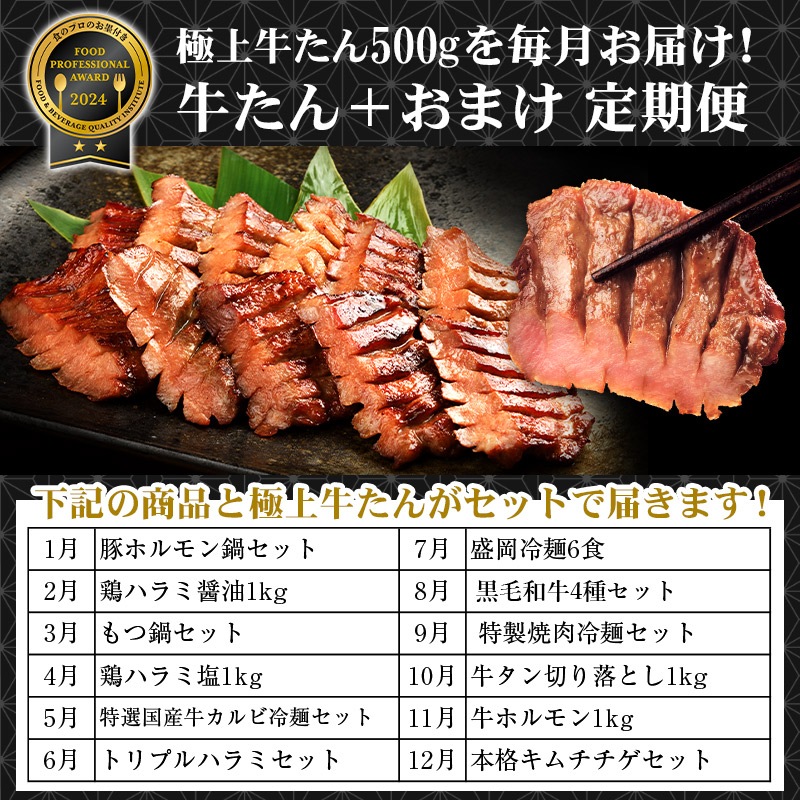 毎月極上牛たん500gとセット商品が一緒に届きます!